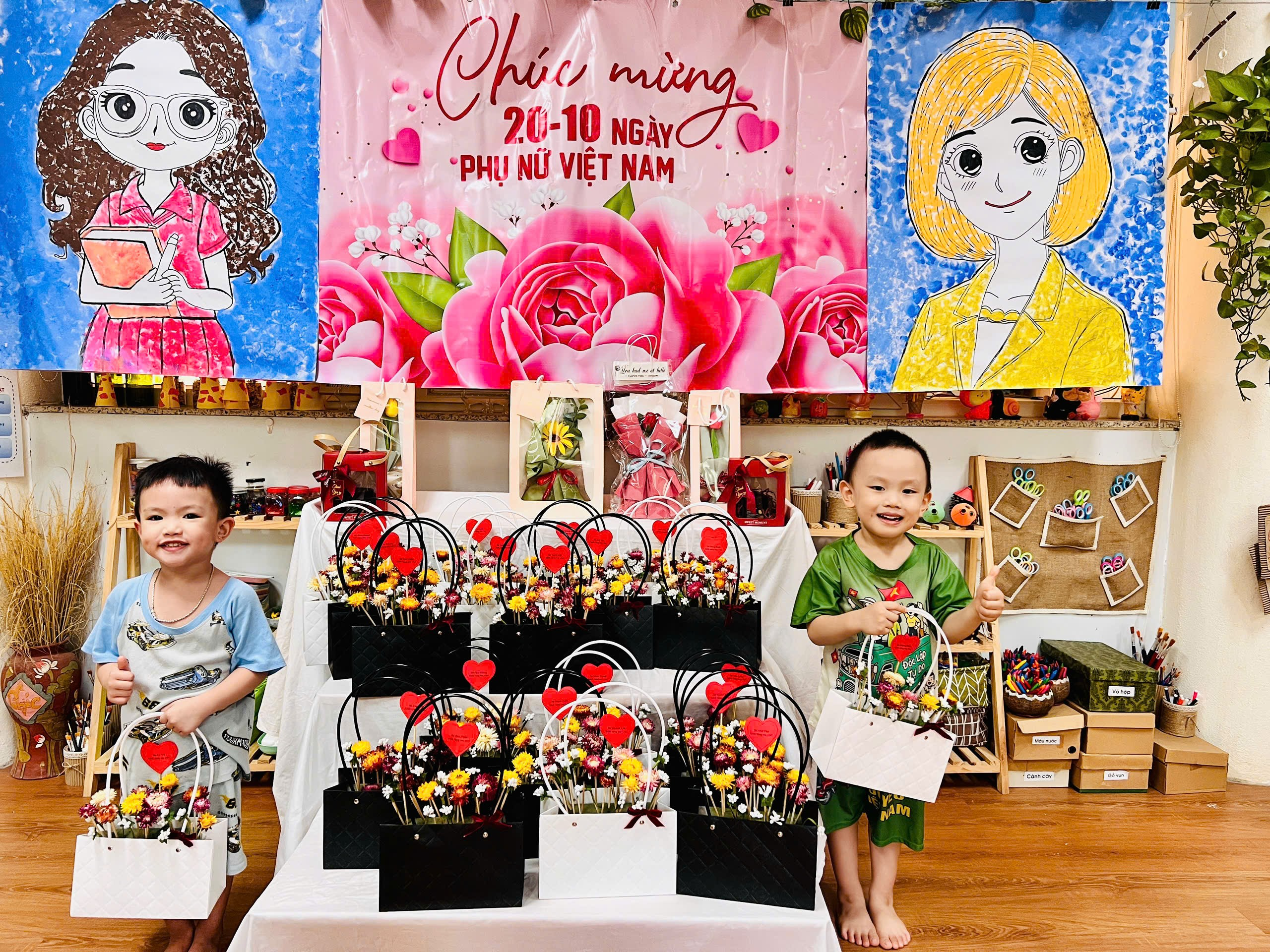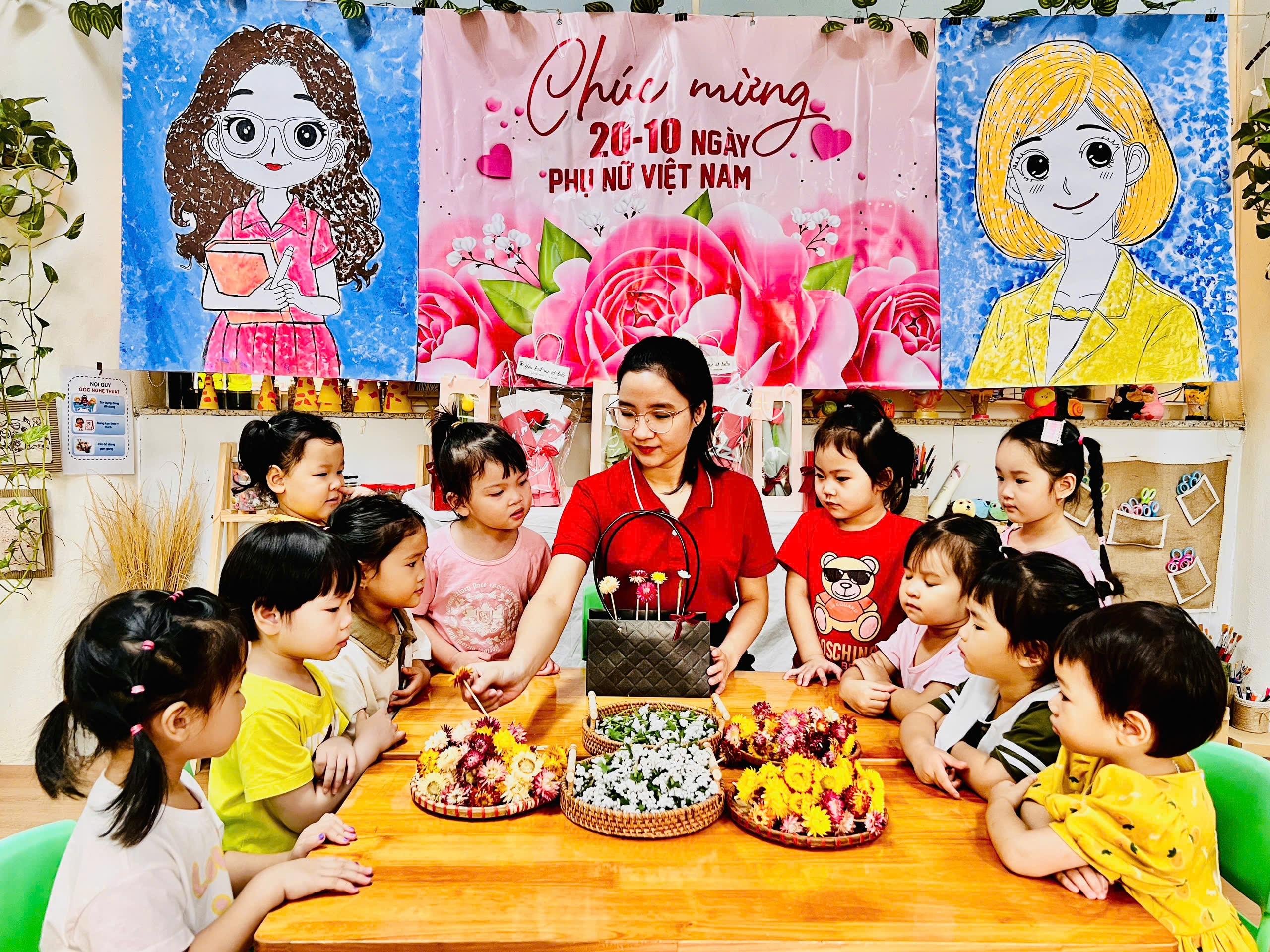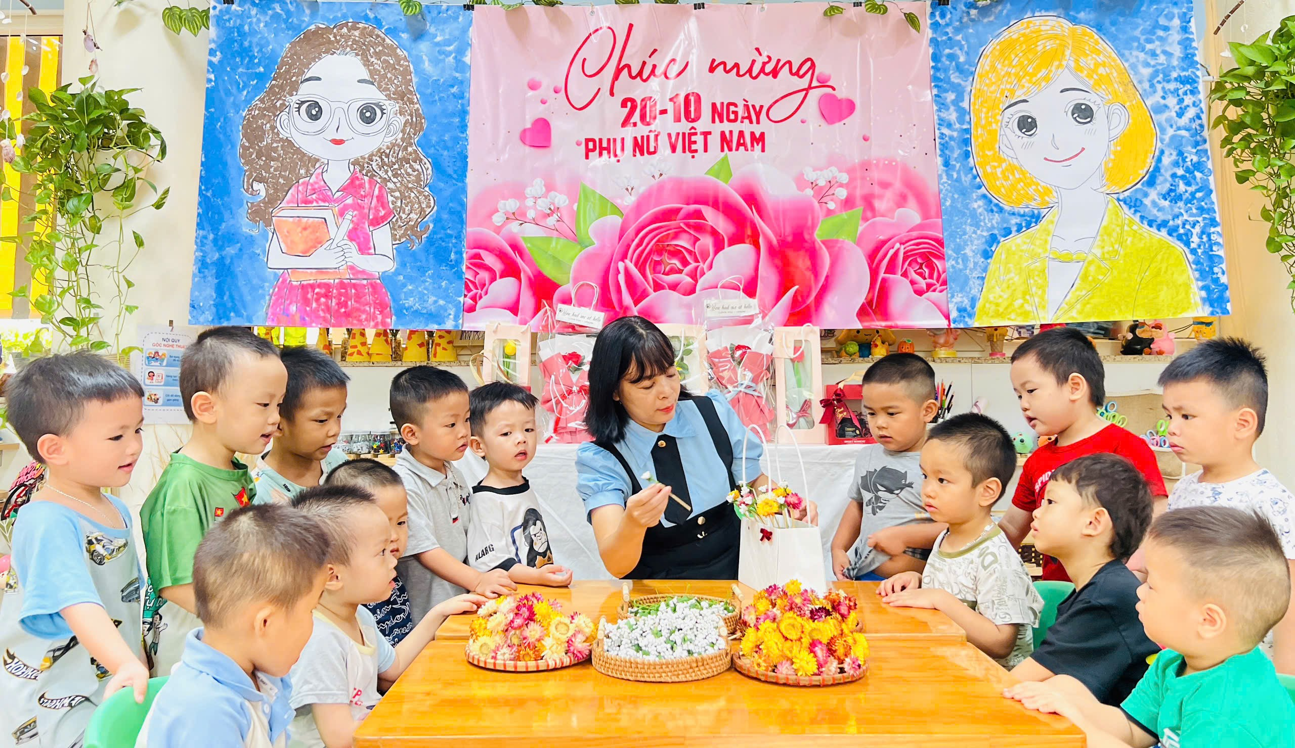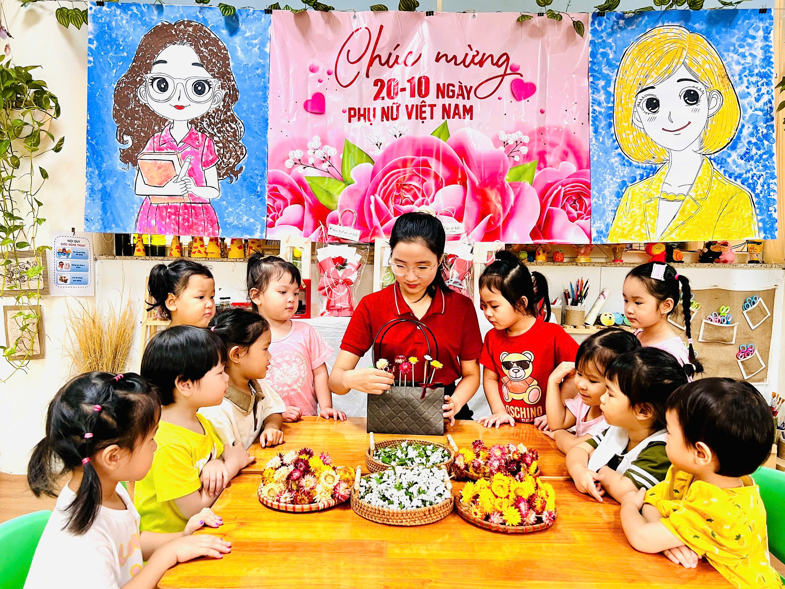 Nhân dịp Ngày Phụ nữ Việt Nam 20/10, các bạn nhỏ lớp Mẫu giáo bé C2 đã cùng nhau tham gia hoạt động cắm giỏ hoa tặng bà và mẹ yêu.