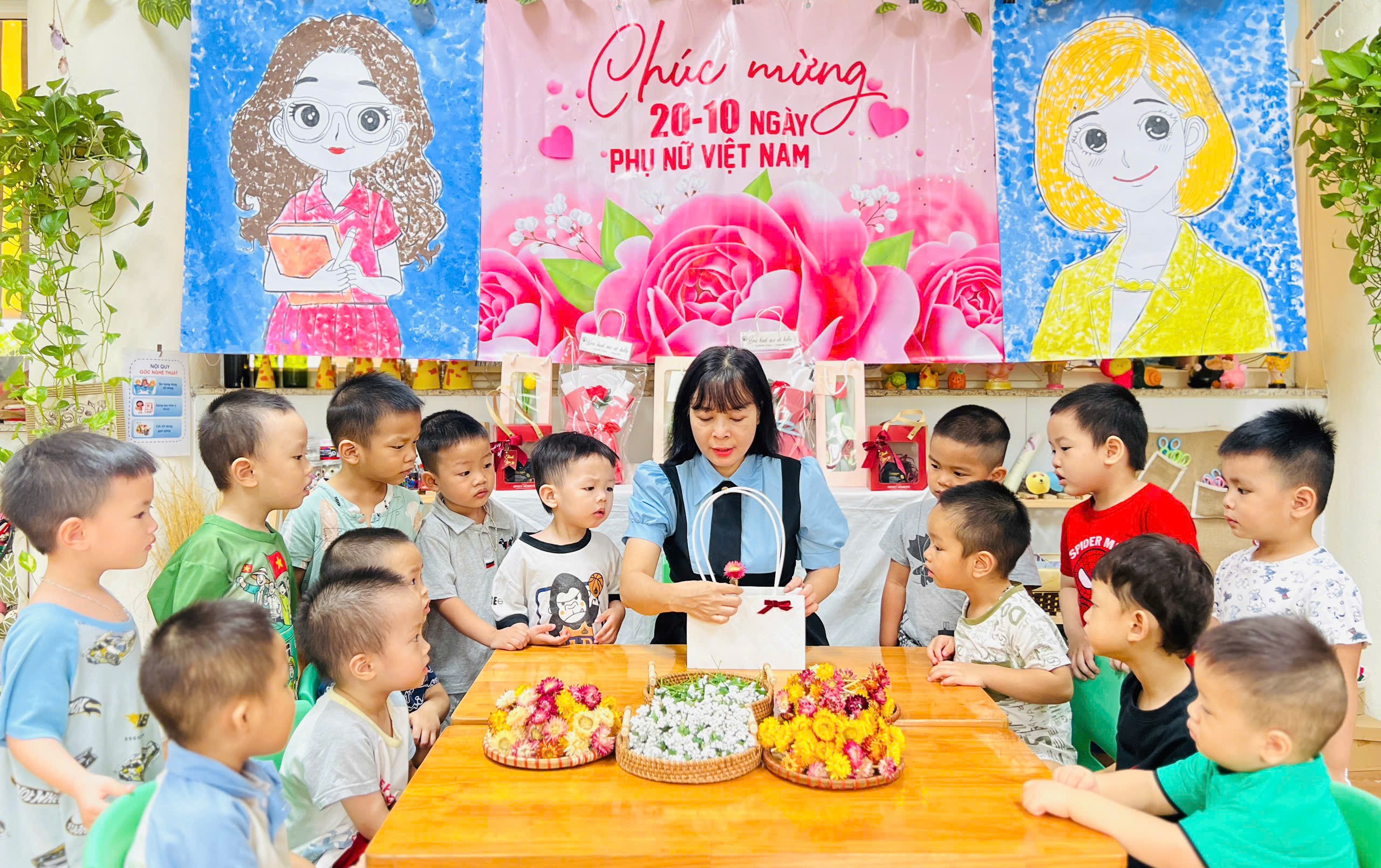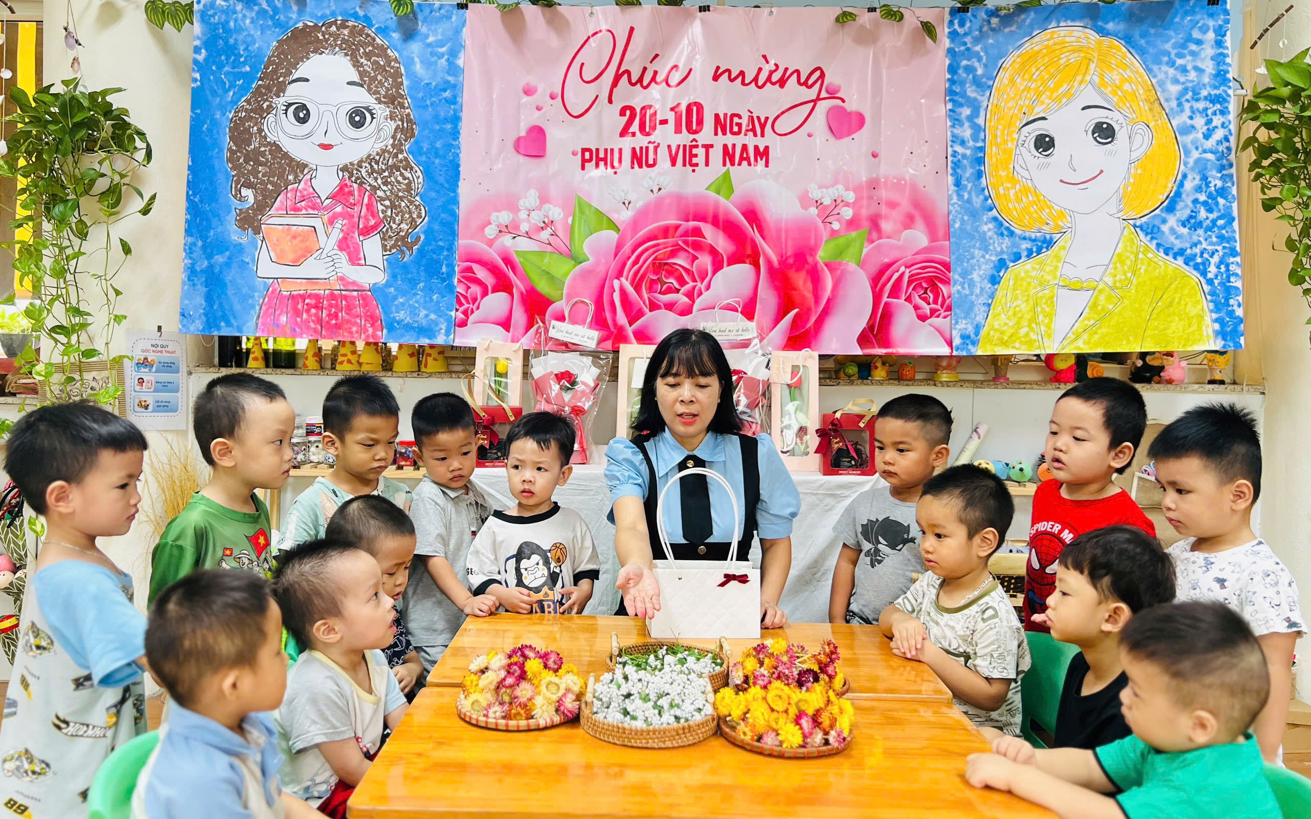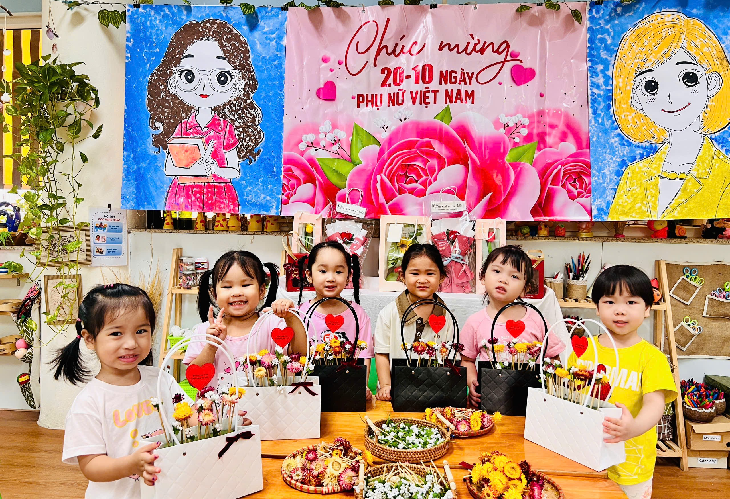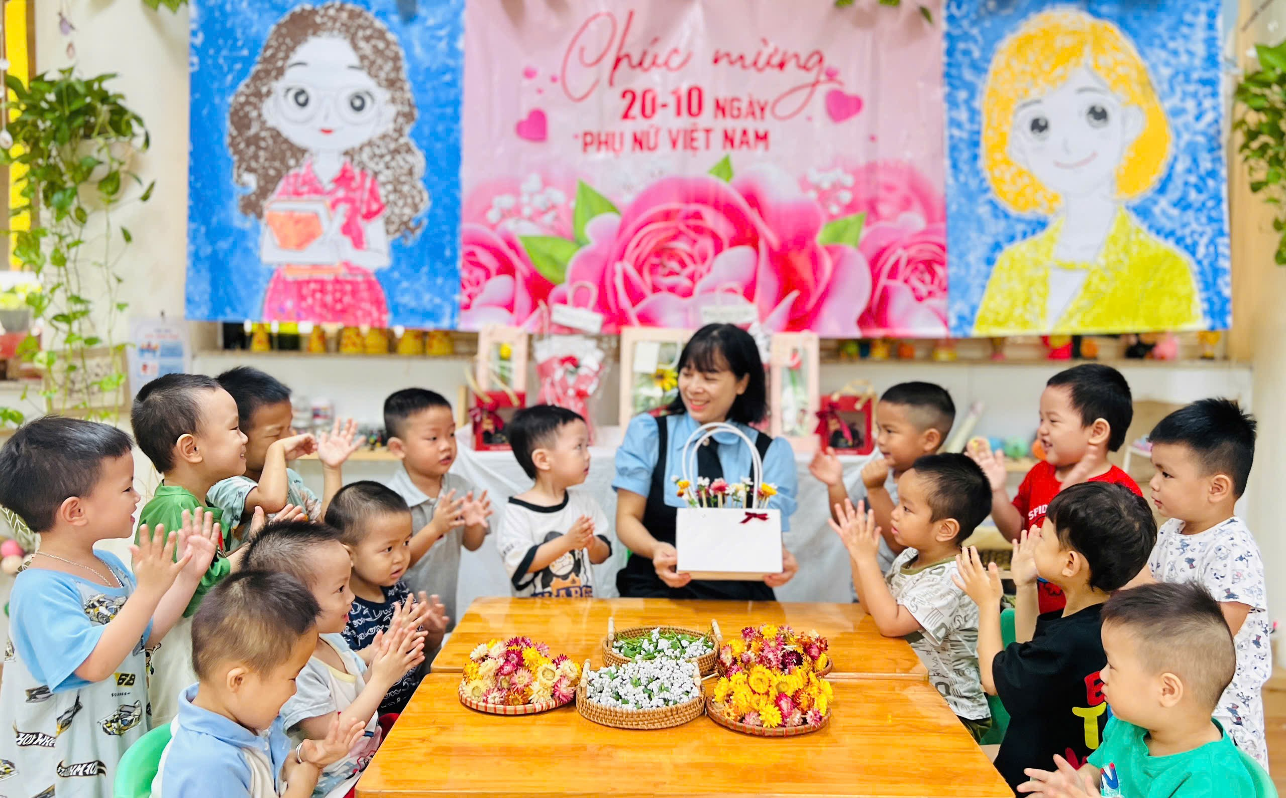 Nhân dịp Ngày Phụ nữ Việt Nam 20/10, các bạn nhỏ lớp Mẫu giáo bé C2 đã cùng nhau tham gia hoạt động cắm giỏ hoa tặng bà và mẹ yêu.