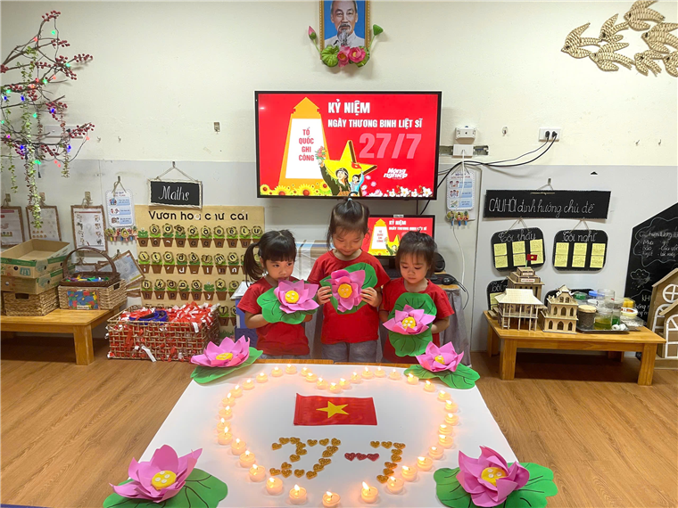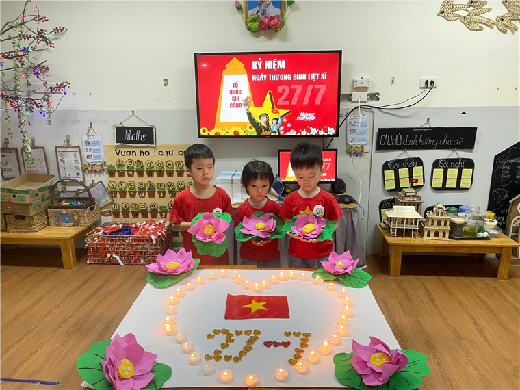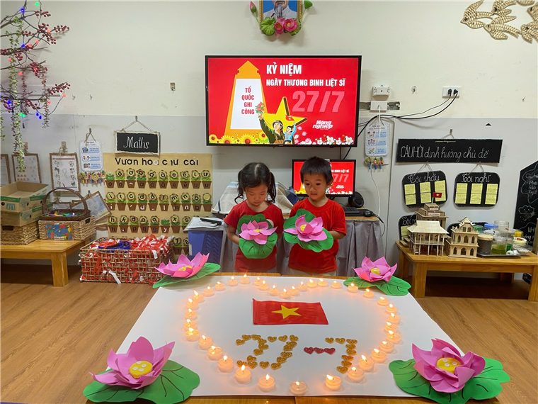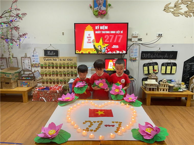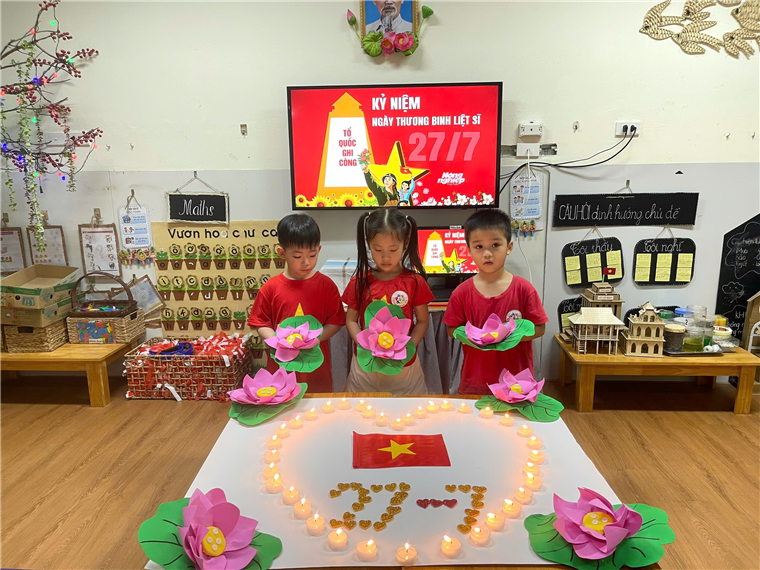 Dù còn rất nhỏ, các con được cô giáo hướng dẫn nhẹ nhàng về ý nghĩa của việc "Uống nước nhớ nguồn". Các cô giáo kể cho các con nghe những câu chuyện về sự hy sinh cao cả của các chú bộ đội, những người đã mang lại hòa bình cho đất nước. Với những ngọn nến lung linh các bé đã thể hiện lòng biết ơn sâu sắc đối với các anh hùng liệt sĩ. Buổi lễ thắp nến đã gieo vào lòng các con những hạt giống đầu tiên về tình yêu quê hương và lòng biết ơn.