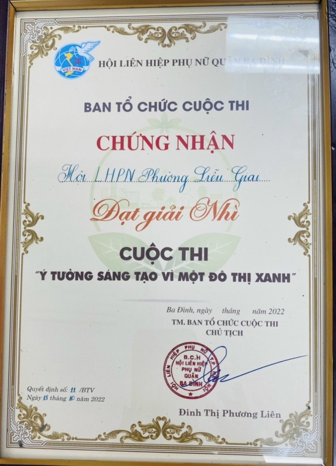 Đội thi Liên hiệp Phụ nữ phường Liễu Giai đã trình bày xuất sắc, đầy sáng tạo với bài dự thi " Xây dựng Thủ đô xanh vì những hành động nhỏ" và đã đạt giải Nhì tại Chung khảo cuộc thi.