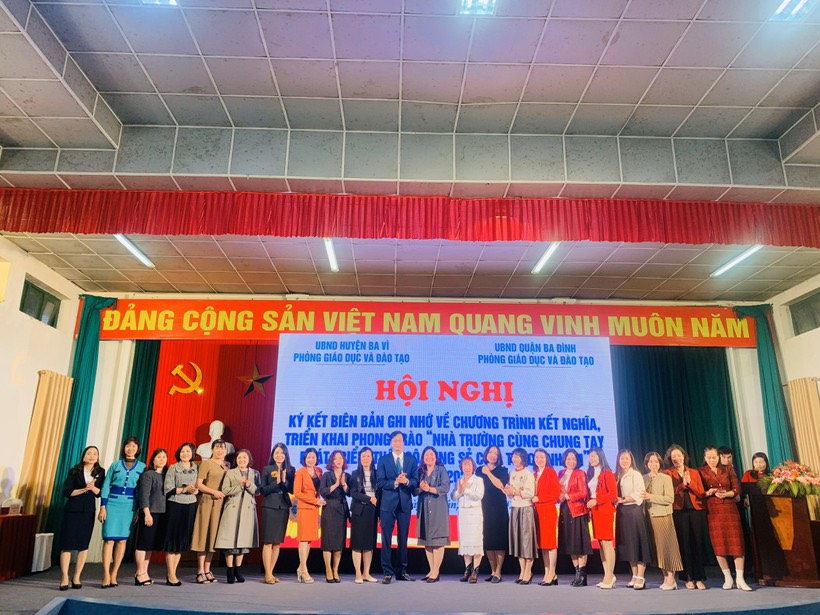 Tại hội nghị, lãnh đạo Phòng GD&ĐT huyện Ba Vì và quận Ba Đình đã chia sẻ về công tác giáo dục đào tạo trên địa bàn huyện và quân. Kết quả triển khai phong trào "Nhà trường cùng chung tay phát triển- Thầy cô cùng sẻ chia trách nhiệm" năm 2022, phương hướng thực hiện giai đoạn 2023-2025.