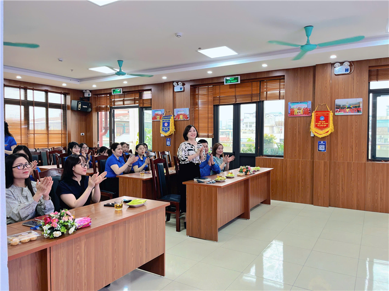 Các đ/c lãnh đạo đoàn phường, chi bộ trường, công đoàn trường tặng hoa chúc mừng.