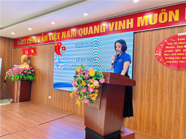 Đ/c Đặng Yến Hoa-Bí thư chi Đoàn trình bày báo cáo tại lễ kỷ niệm