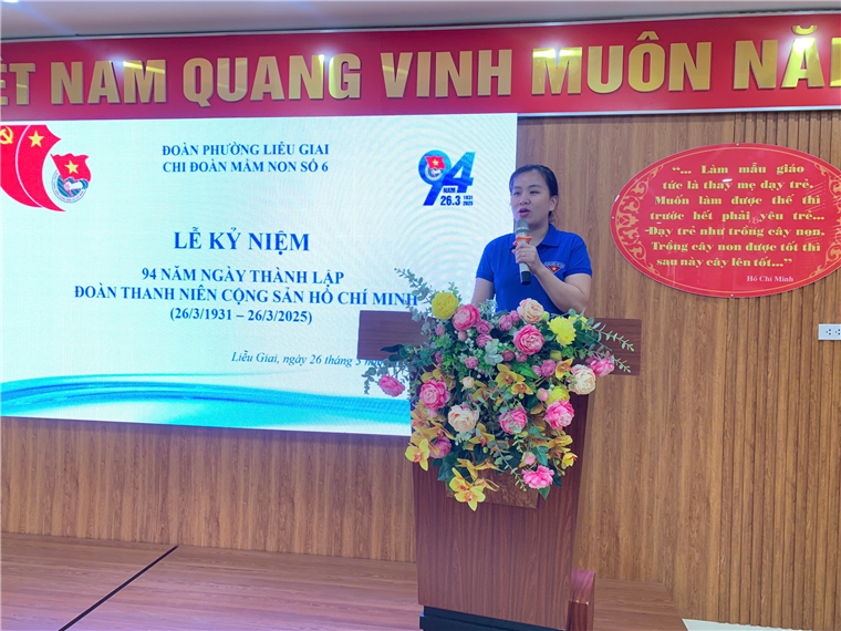 Sáng 26/03, tại phòng Hội đồng Trường Mầm non Số 6 long trọng tổ chức lễ kỉ niệm 94 năm ngày thành lập Đoàn Thanh niên Cộng sản Hồ Chí Minh (26/03/1931-26/03/2025).