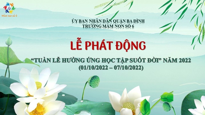 Thực hiện Kế hoạch số 261/KH-BCĐ ngày 28/9/2022 của Ban chỉ đạo xây dựng xã hội học tập quận Ba Đình, trường mầm non Số 6 phát động " Tuần lễ hưởng ứng học tập suốt đời" năm 2022 trong tập thể CBGVNV và học sinh từ ngày 01/10/2022- 07/10/2022.