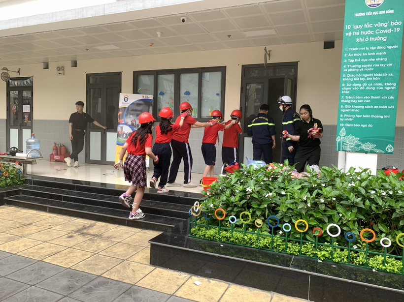 Tại hoạt động sinh hoạt ngoại khóa, học sinh Trường Tiểu học Kim Đồng đã hào hứng trải nghiệm 4 trạm hoạt động phòng cháy, chữa cháy và cứu nạn, cứu hộ, gồm Trạm 1: Kiến thức cơ bản về phòng cháy, chữa cháy, nhận diện lính cứu hỏa; Trạm 2: Thoát nạn trong môi trường khói, khí độc; Trạm 3: Thoát nạn trong địa hình nhà cao tầng; Trạm 4: Sơ cấp cứu cho người bị nạn.