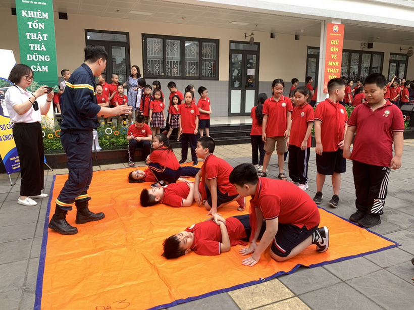Thiếu tá Nguyễn Đức Thắng - Phó trưởng Công an quận Ba Đình cho biết, trong các trường học hiện nay, ngoài việc giảng dạy, trau dồi kiến thức thì còn cần trang bị đầy đủ các kiến thức và kỹ năng sống cho các em học sinh, giúp các em nhận biết rõ hơn về các vấn đề trong xã hội mà điển hình là kỹ năng cơ bản về phòng cháy, chữa cháy, kỹ năng thoát nạn khi có cháy nổ xảy ra…