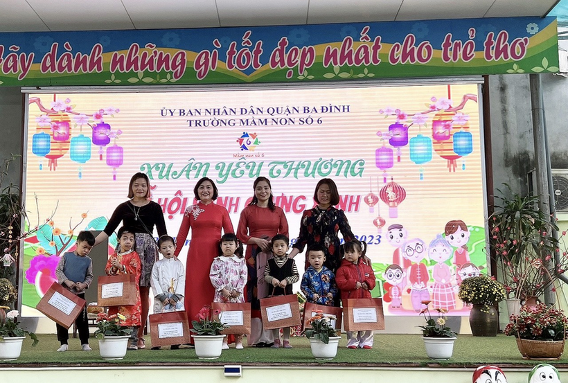 Trong buổi lễ, Ban đại diện cha mẹ học sinh cũng đã kết hợp với nhà trường tổ chức trao quà Tết cho các bé có hoàn cảnh khó khăn. Với mong muốn mang đến cho các em cùng gia đình một niềm vui nho nhỏ nhưng ấm áp tình người của tập thể trường Mầm non Số 6. Cũng qua hoạt động này, sẽ dần hình thành trong trẻ những phẩm chất tốt đẹp của con người, đó là biết giúp đỡ và chia sẻ.