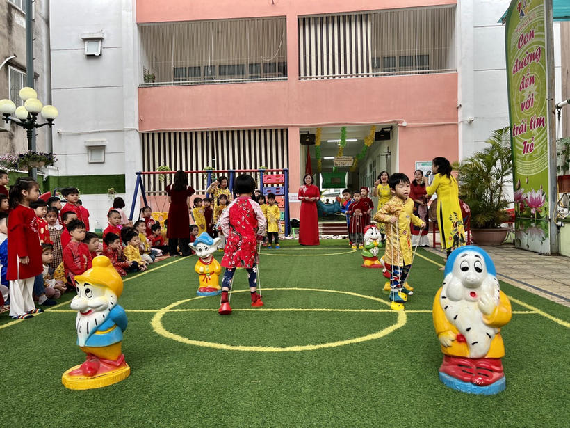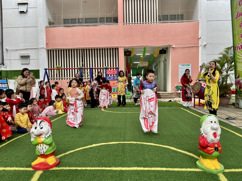 Đến với lễ hội, các bé được tham gia những trò chơi dân gian mang đậm màu sắc của Tết Nguyên đán: Kéo co; Đi cà kheo; Nhảy bao bố…