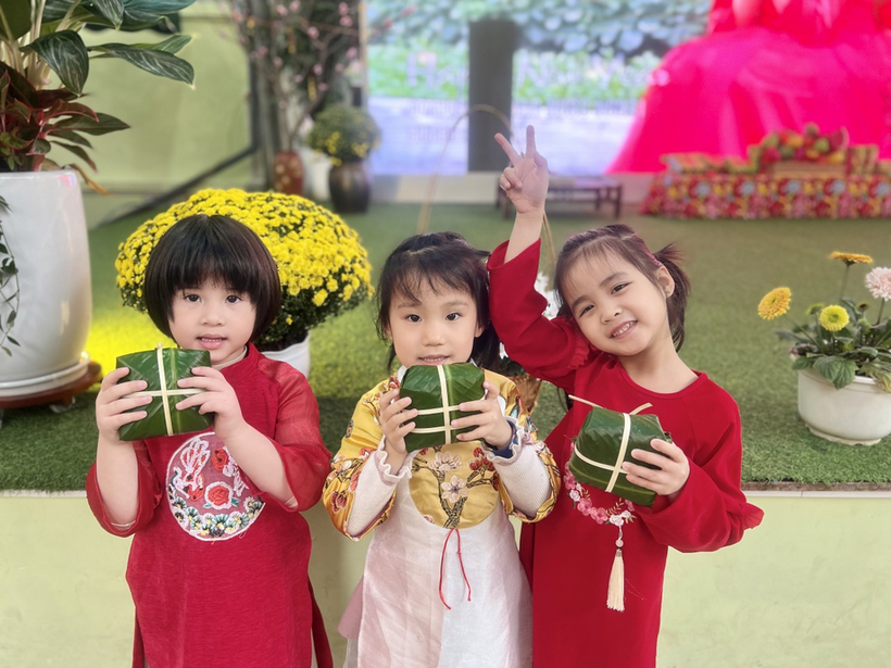 Mỗi chiếc bánh sau khi luộc xong các con sẽ được thưởng thức ngay trên lớp. Và chắc chắn, khi các bé trở về nhà sẽ không quên khoe “thành tích” với ông bà, bố mẹ về những điều mà bé được trải nghiệm trong Lễ hội Bánh chưng xanh.
