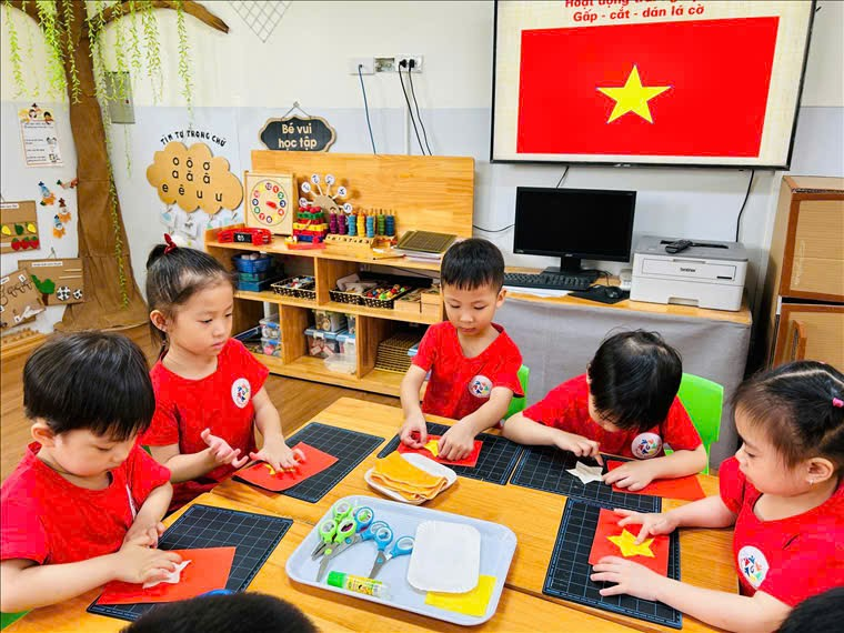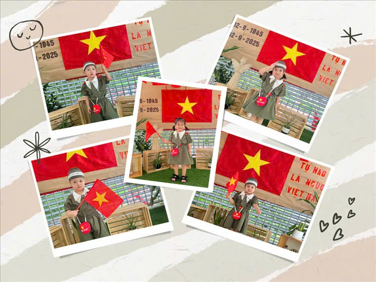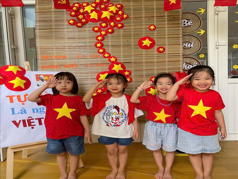 Các hoạt động hướng tới kỷ niệm 80 năm ngày Quốc khánh 2/9 của các lớp cũng vô cùng sôi nổi và đầy ý nghĩa. Thông qua các hoạt động như: giới thiệu lá cờ Tổ quốc, trang trí lá cờ, mặc những bộ trang phục tái hiện lại hình ảnh những cô chú bộ đội tí hon,… đã thể hiện được niềm tự hào khi là con cháu của dân tộc Việt Nam anh hùng mang theo khát vọng tiếp nối truyền thống hào hùng của dân tộc.