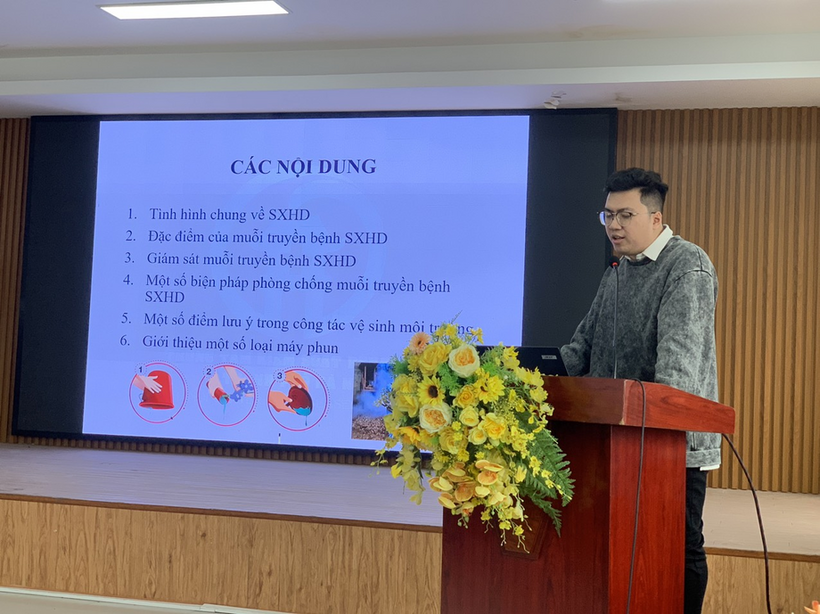 Tại buổi tập huấn, bác sĩ Trần Hữu Hiếu đã chia sẻ rất nhiều kiến thức và kỹ năng bổ ích về việc phòng và chống bệnh sốt xuất huyết.