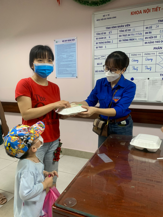 Những suất cơm trao đến tay những bệnh Nhi và người thân