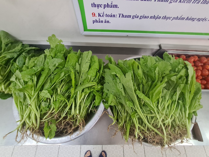 Bếp ăn được tổ chức theo đúng quy trình một chiều, từ khâu tiếp phẩm đến chế biến và chia thức ăn. Thực phẩm cung cấp cho bếp ăn được đảm bảo nguồn gốc rõ ràng từ công ty được kiểm định.