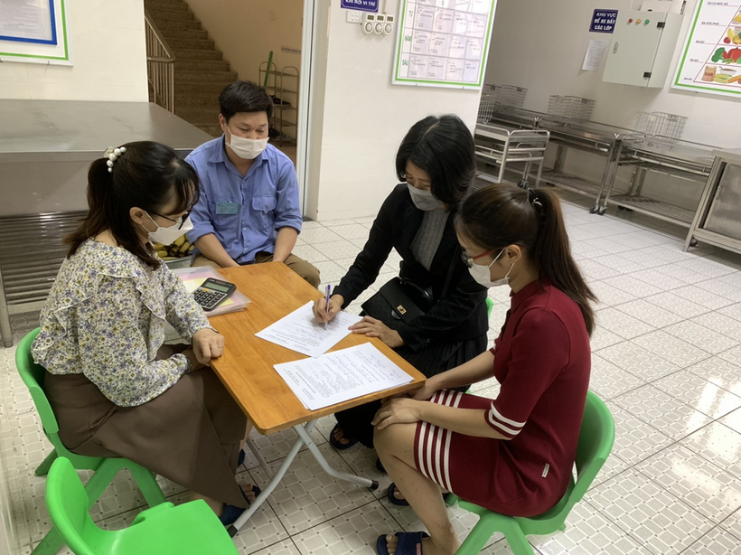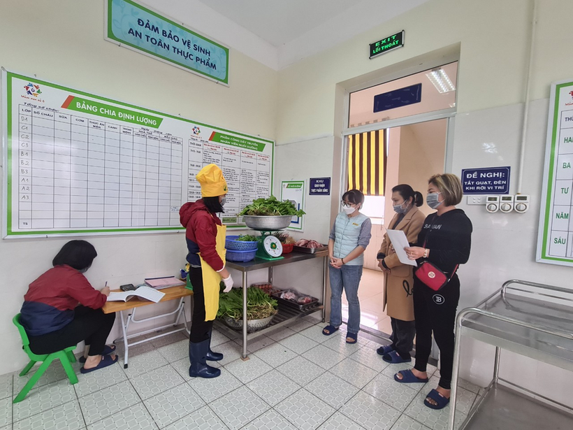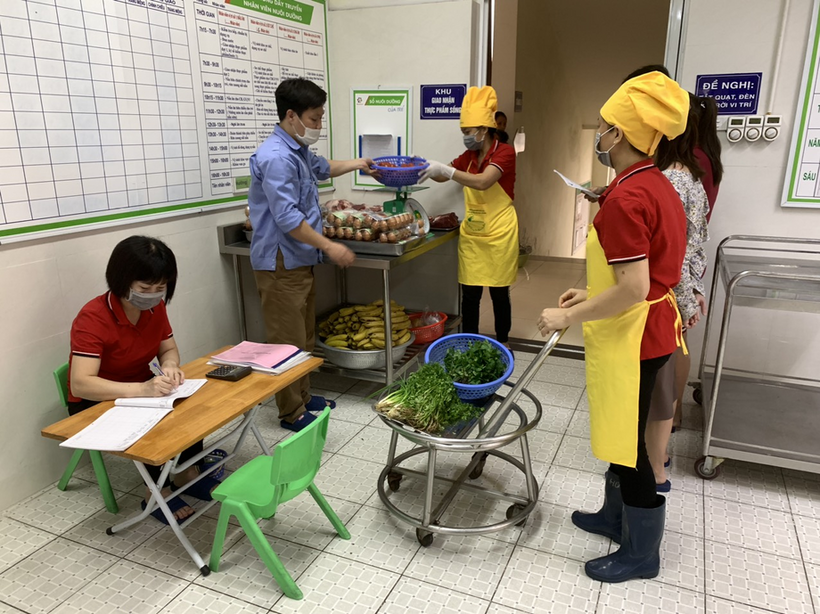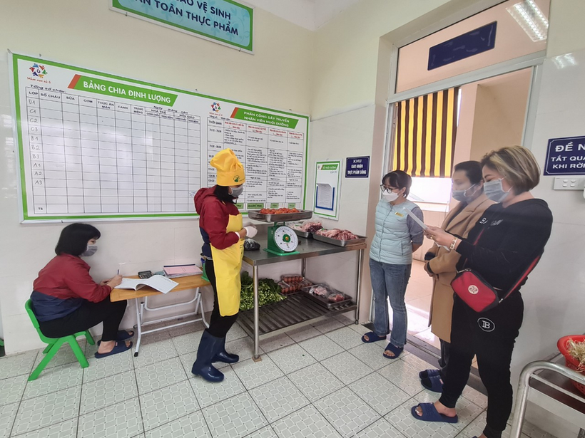 Nhà trường cũng thành lập ban giám sát đầy đủ thành phần: Ban giám hiệu và đại diện cha mẹ học sinh, nhân viên nuôi dưỡng, đại diện giáo viên, nhân viên giao hàng cảu công ty cung cấp thực phẩm…cùng giao nhận và kiểm tra về chất lượng, số lượng thực phẩm, có ký xác nhận đầy đủ vào biên bản giao- nhận thực phẩm.