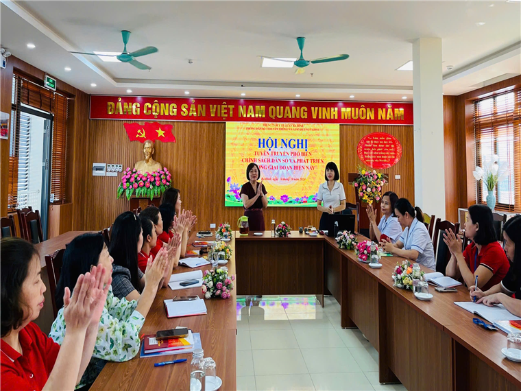 Tại Hội nghị, đ/c Đặng Thanh Nga cung cấp thông tin về quy mô dân số của Hà Nội và quận Ba Đình, những cơ hội và thách thức phát triển trong thời kỳ “ cơ cấu dân số vàng”. Một nội dung mà nhiều giáo viên quan tâm đó là Nghị định chi tiết thi hành pháp lệnh sửa đổi điều 10 của pháp lệnh dân số chính phủ đối với những trường hợp sinh 1 lần, 2 lần hay 2-3 con.