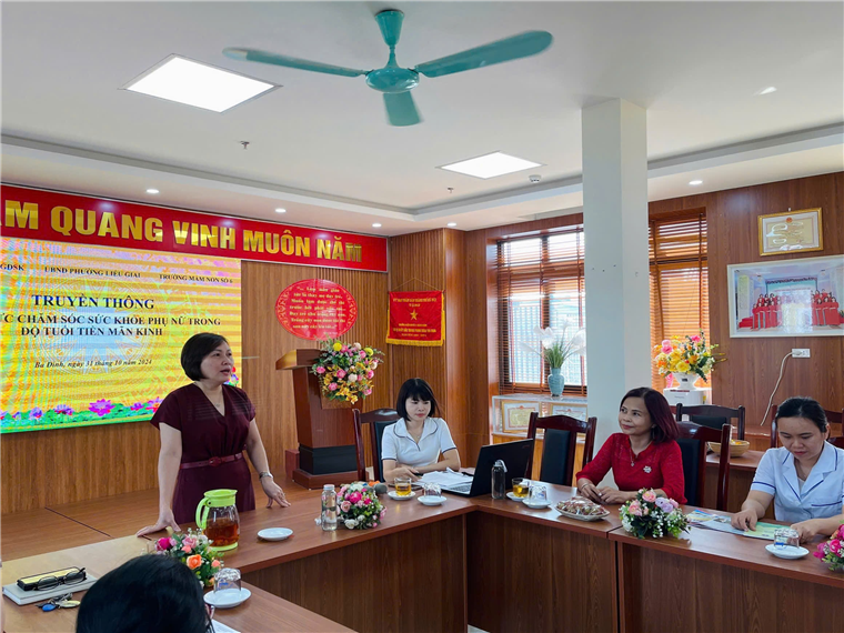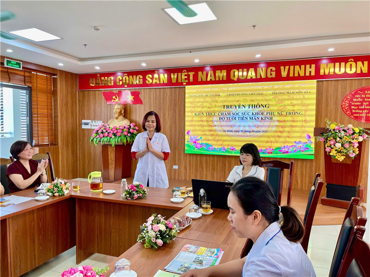 Sáng ngày 31/10/2024, Phòng dân số Trung tâm Y tế quận Ba Đình phối hợp cùng Trạm Y tế phường Liễu Giai tuyên truyền về chính sách dân số hiện nay và chăm sóc sức khỏe cho phụ nữ tại Trường Mầm non Số 6 do đồng chí Đặng Thanh Nga- Phó phòng Dân số- Trung tâm Y tế quận Ba Đình chia sẻ.