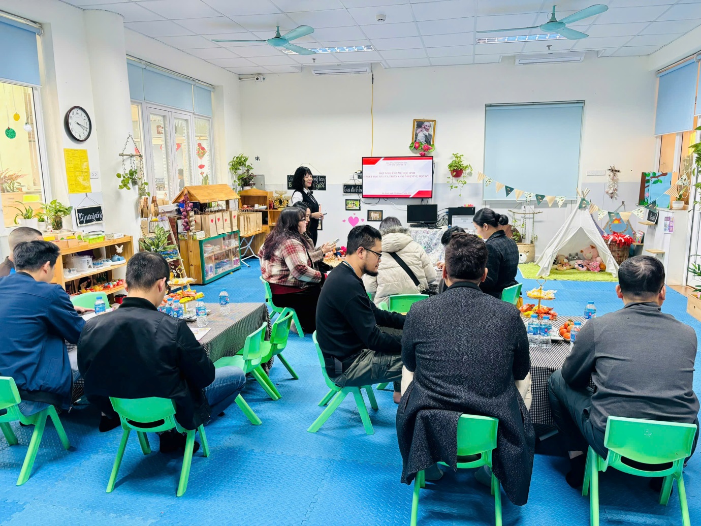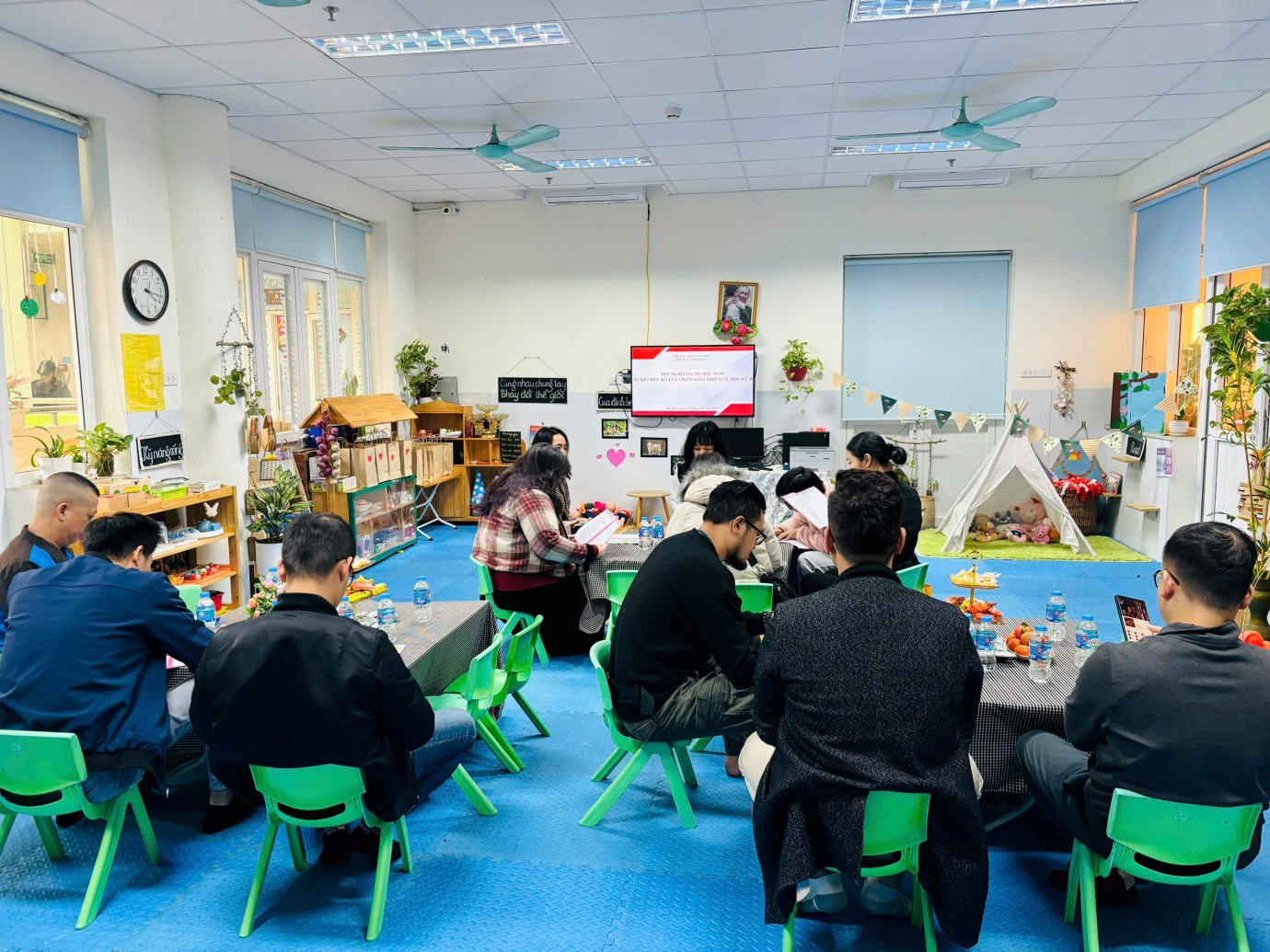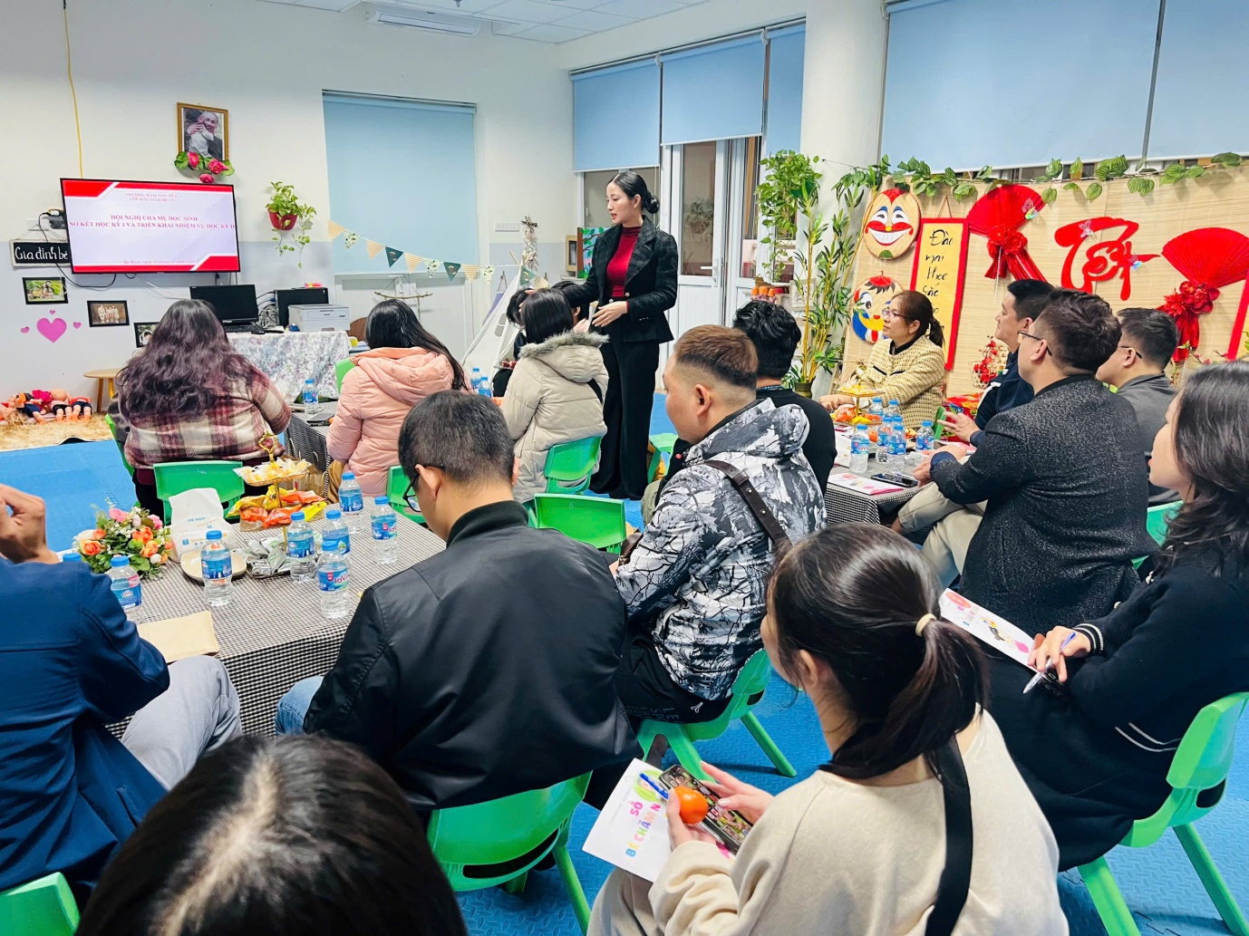 Trong buổi họp, giáo viên chủ nhiệm đã thông báo tới phụ huynh những kết quả nổi bật của trường, của từng trẻ trong học kỳ I năm học 2024-2025 và Kế hoạch trọng tâm của học kỳ II. Qua buổi họp, giáo viên đã gửi lời cảm ơn tới toàn thể phụ huynh đã luôn đồng hành giáo viên và các hoạt động của lớp trong suốt học kì I và mong muốn tiếp tục nhận được sự ủng hộ, đồng hành của các bậc phụ huynh trong học kỳ II.