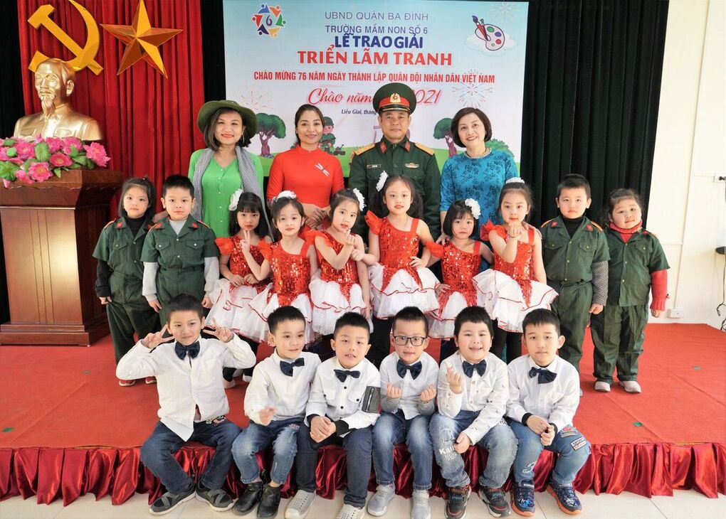 Chúc mừng các bạn đã đạt giải trong Hội thi vẽ tranh. Các bé khối Mẫu giáo lớn đã gửi gắm đến Lễ trao giải những tiết mục văn nghệ đặc sắc chúc mừng Hội thi và Chào năm mới 2021. Đến dự Lễ trao giải của các bé còn có Trung tá Hồ Văn Hòe- Trạm trưởng trạm thông tin Bộ tư lệnh Công binh. Các con học sinh giao lưu và được Trung tá trao giải, tặng quà Hội thi.