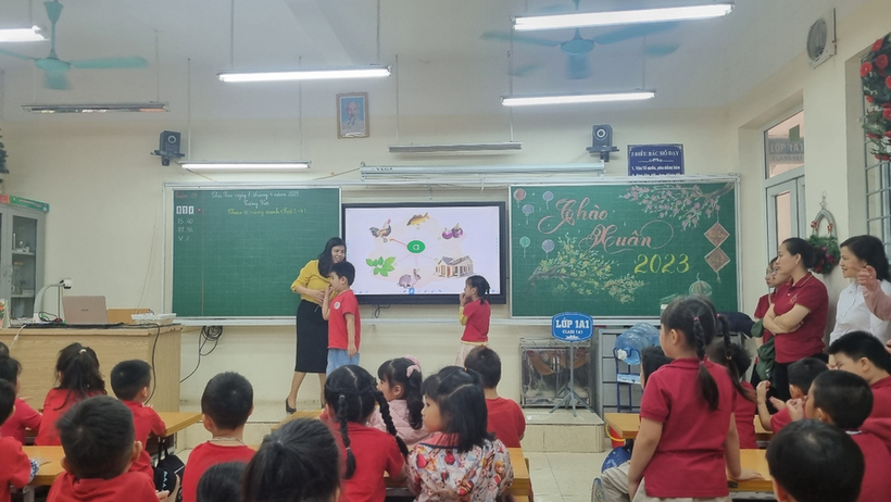 Bạn nào cũng háo hức sang thăm trường tiểu học!