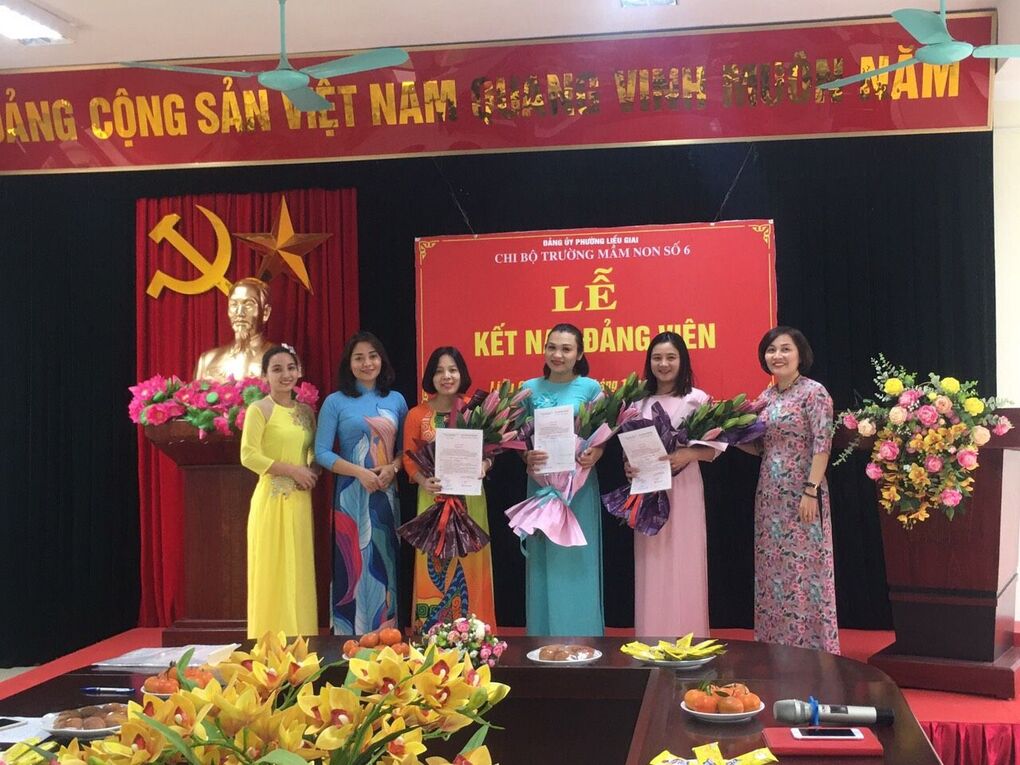 Được sự nhất trí của Ban thường vụ Đảng ủy phường Liễu Giai, Chi bộ trường mầm non Số 6 long trọng tổ chức lễ kết nạp cho 3 quần chúng Lã Thị Thanh Hà, Phạm Quỳnh Mai và Vũ Thị Quỳnh vào Đảng Cộng Sản Việt Nam.
