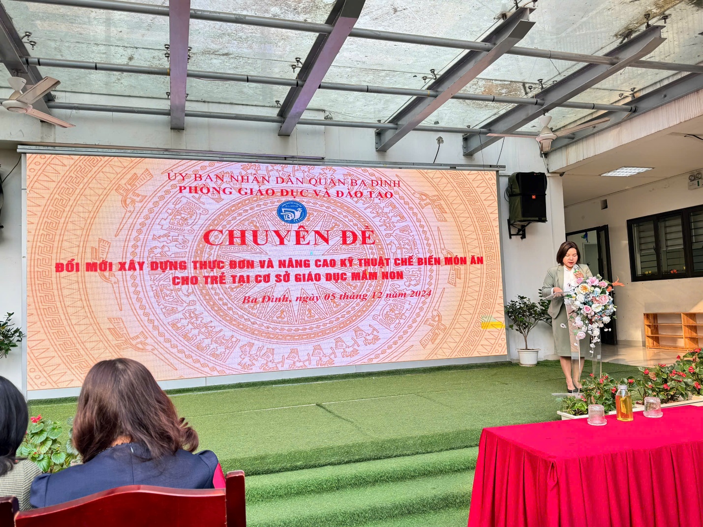 Đến tham dự buổi sinh hoạt Chuyên đề có đồng chí Trần Thị Thanh Từng- Phó Trưởng phòng GD-ĐT quận Ba Đình, các đồng chí Chuyên viên phòng GD-ĐT cùng các đồng chí cán bộ quản lý, nhân viên nuôi dưỡng các trường mầm non công lập và tư thục trên địa bàn Quận.