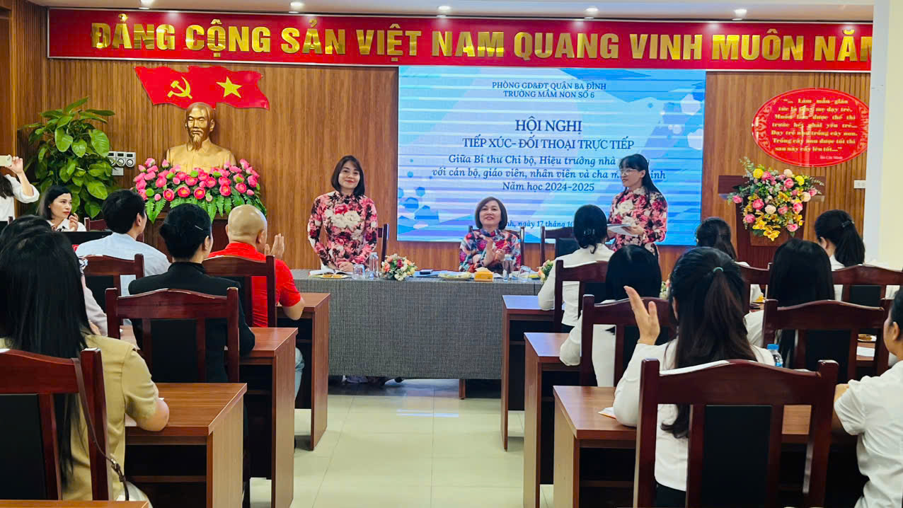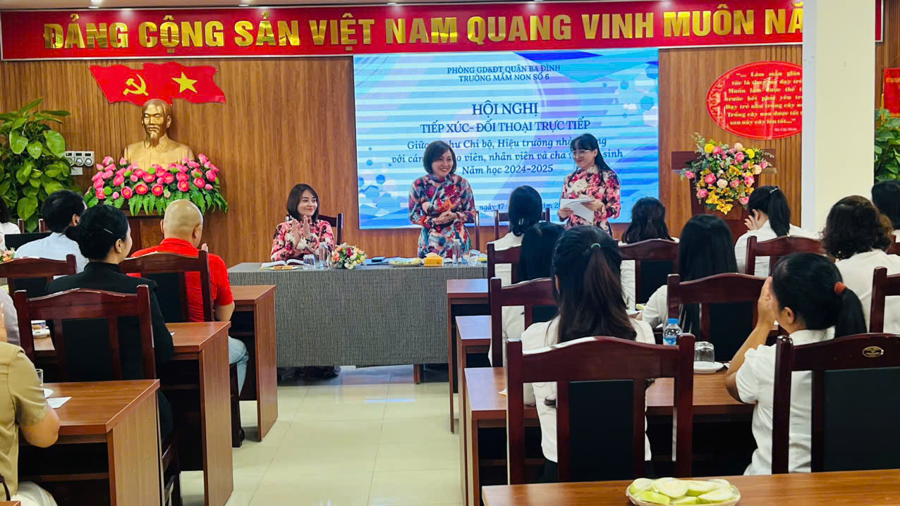 Tại Hội nghị, bà Bùi Thị Thu Hiền - Bí thư Chi bộ - Hiệu trưởng nhà trường cho biết, trong những năm qua, nhà trường đã tổ chức nhiều hoạt động Hội nghị đối thoại có chất lượng, thiết thực, liên quan đến nhu cầu, nguyện vọng của đông đảo cha mẹ, học sinh và các cô giáo. Với chủ đề của Hội nghị Đối thoại năm nay, bà mong muốn giúp cho phụ huynh học sinh cũng như tập thể CB-GV-NV nhà trường sẽ hiểu rõ hơn về công tác Dân vận và vai trò của công tác Dân vận khéo đối với trường mầm non, nhằm huy động sức lực, trí tuệ cũng như những đóng góp vật chất để từng bước nâng cao chất lượng công tác chăm sóc, nuôi dưỡng, giáo dục trẻ tại trường Mầm non Số 6.