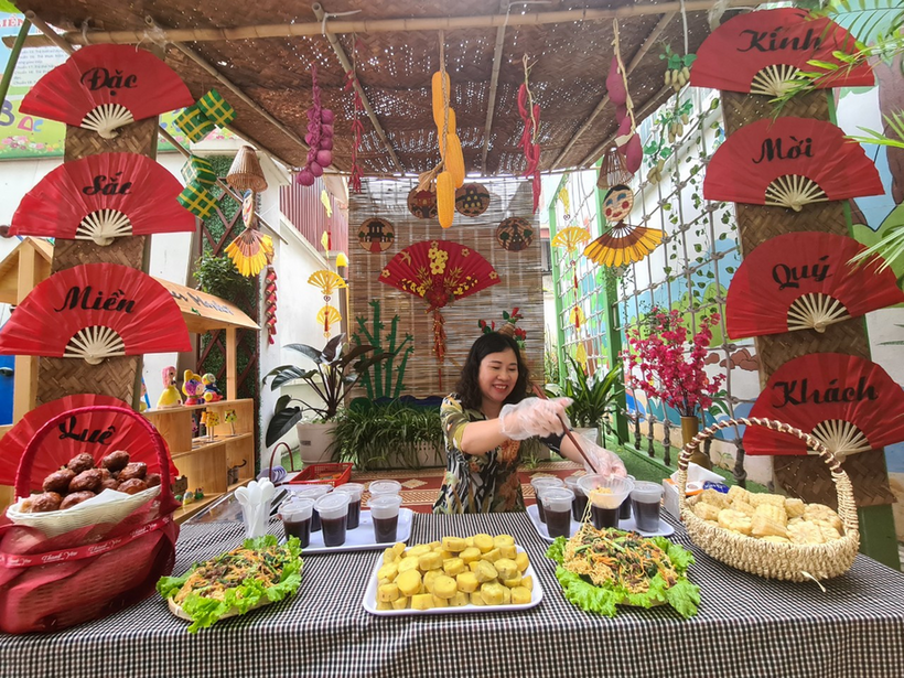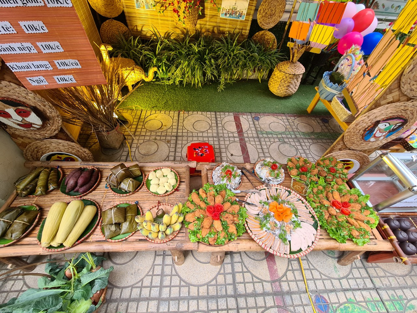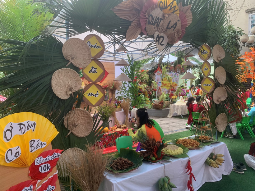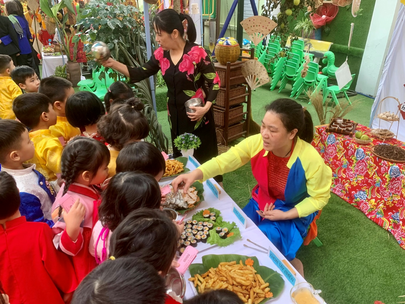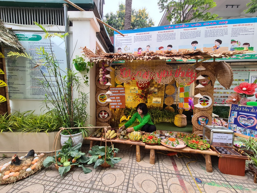 Trong ngày Hội chợ quê, các bé được trải nghiệm mua hàng bằng phiếu và đi chọn những món ăn ở các gian hàng mà mình thích. Tiếng chào mời khách, tiếng hỏi mua, tiếng bán rộn ràng như một phiên chợ quê thực sự… Đâu đó ở góc Hội chợ, có sự xuất hiện của bác nghệ nhân làng Tò he Phú Xuyên đã khiến các bé thích thú, đứng ngắm nhìn những con vật tò he mà không muốn dời mắt.