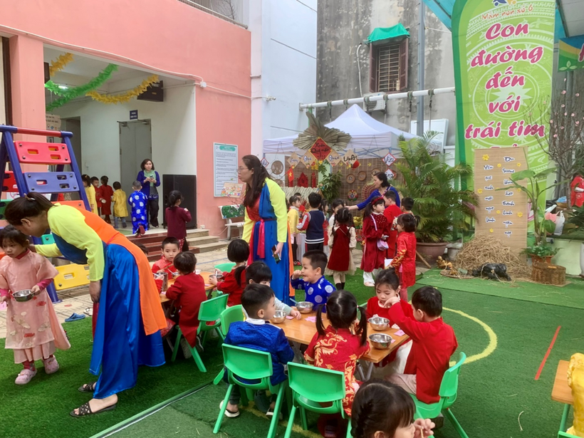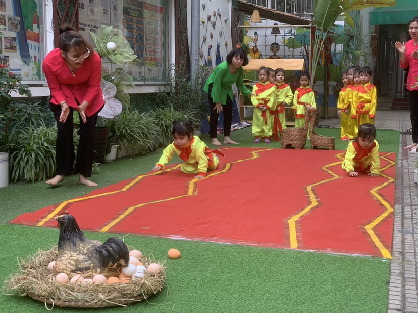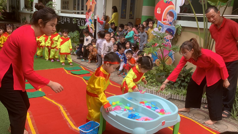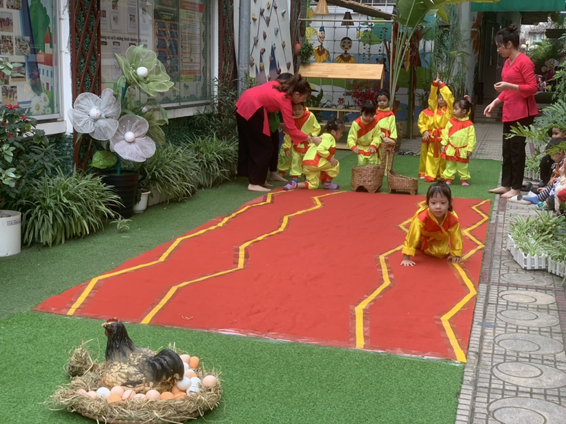 Các cô giáo cũng luôn chân, luôn tay để tiếp đón các vị khách nhí.