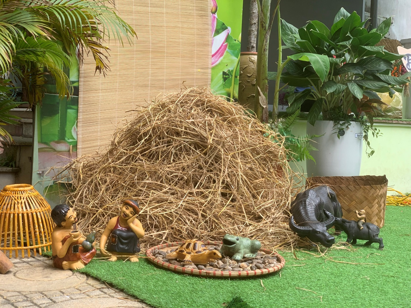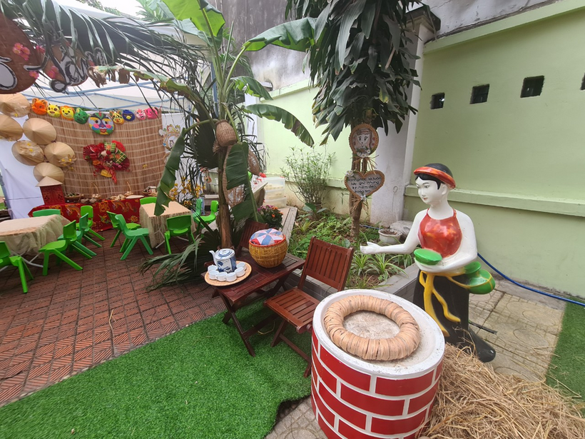Đến với Chợ quê, các bạn sẽ được sống trong không gian làng quê với những ngôi nhà mái lá, con trâu, đống rơm,…đã được tái hiện qua bàn tay khéo léo, sáng tạo của cô, trò và các bậc phụ huynh trường mầm non Số 6. Sự sắp xếp, bố trí toát lên một mô hình chợ quê lạ mà quen. Các giá bày hàng, các sạp bán hàng, tất cả đều được tận dụng từ những nguyện vật liệu tự nhiên, có sẵn như tre, rơm, lá… Các mặt hàng, món ăn bán tại chợ cũng vô cùng phong phú, đa dạng chủng loại.