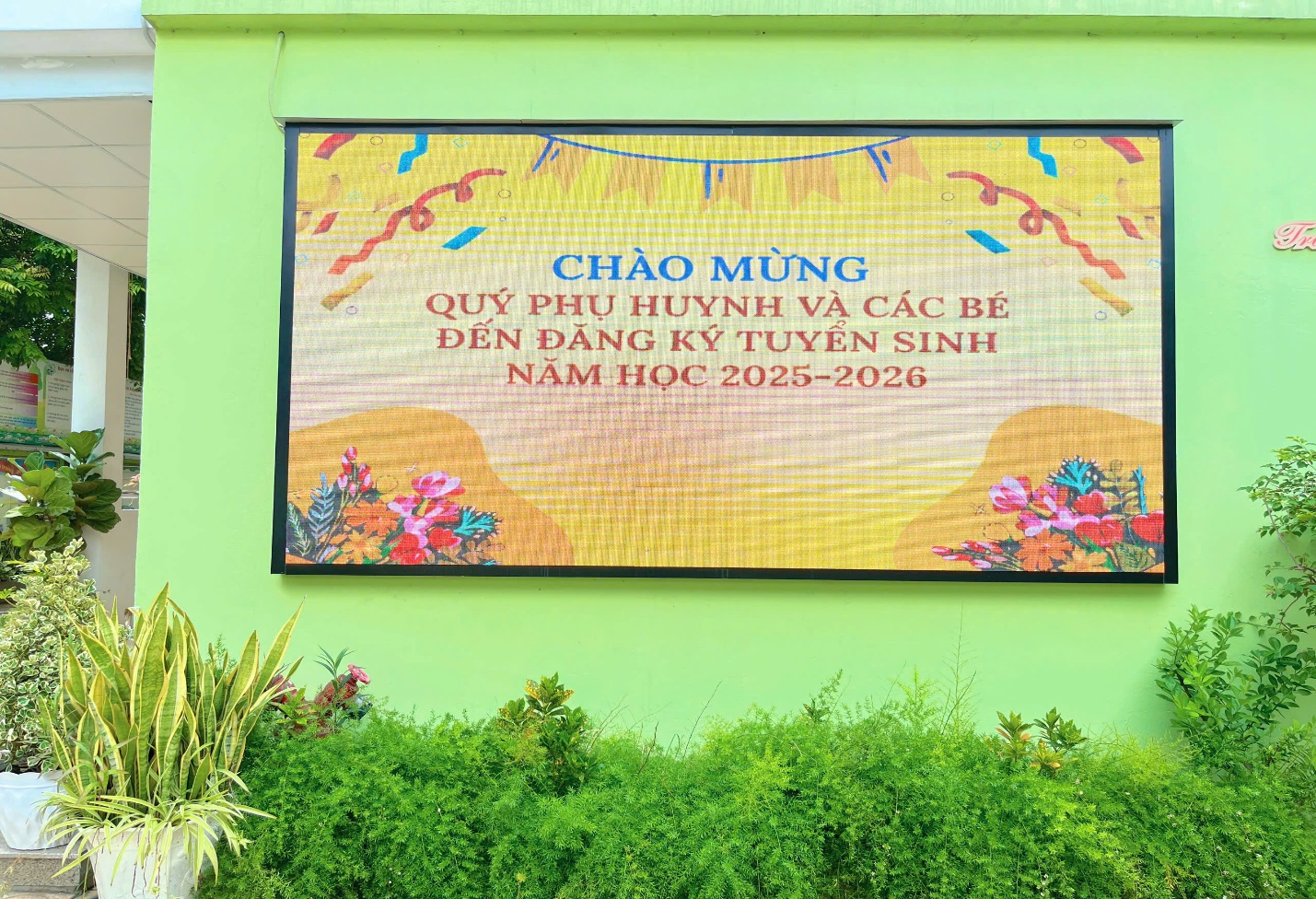 Màn hình Led tại cổng trường học như một lời chào đón các bậc phụ huynh và học sinh đến đăng ký tuyển sinh năm học 2025-2026
